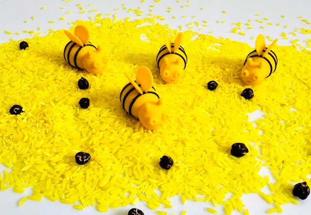 Deze schattige bijtjes zijn perfect om het fantasiespel te verrijken. Je kan ze ook gebruiken in de sensorische speelbak of in combinatie met de bijenkorven.