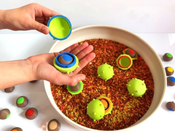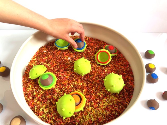 Ook leuk om als memory spel te gebruiken. Wie kan dezelfde kleur van noten terug vinden ?