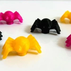 Set van 6 spinnen die je kan gebruiken bij het spinnenweb speeldeksel of voor in de sensorische speelbak of ander fantasiespel.