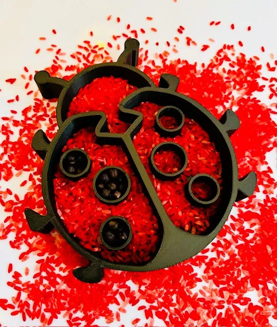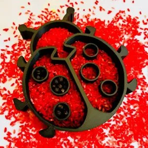 Deze vulvorm kan je perfect vullen met rijst, kikkererwten, pomponnetjes en andere vulmaterialen. Heel leuk om te gebruiken in de sensorische spelbak. Bevordert het spel en stimuleert de fijne motoriek.